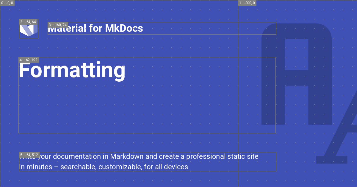 出于这个原因,Material for MkDocs 再次遵循了其使其尽可能简单和强大的核心原则,提供了一个易于使用的框架,使用 Python 图像处理库来构建自定义布局。